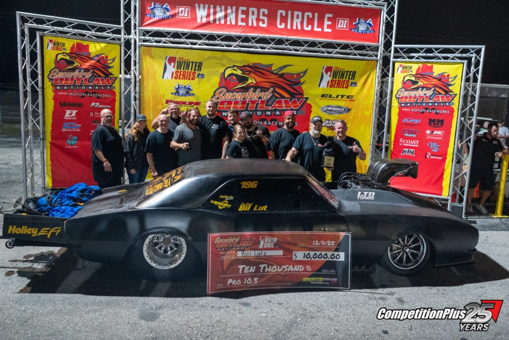 6 – LUTZ WINS PRO 10.5 – Pro 10.5 joined the full three-race Drag Illustrated Winter Series lineup this season, and Ohio veteran Bill Lutz made the most of the expanded schedule with a $10,000 victory over NFL Super Bowl champion Fletcher Cox in the final round. Lutz entered the weekend aiming to capitalize on past near-misses and delivered throughout eliminations in his screw-blown “Big Boost” ’67 Camaro.